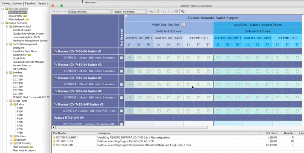 Tarkvaras on tugi kõikidele Ruckuse Wireless ja Wired toodetele, mis teeb planeerimise oluliselt kergemaks, kui tegu on suurte pakkumiste ja keeruliste konfiguratsioonidega. Ruckuse seadmete kataloog on Ruckuselt pidevalt värskena saadaval.