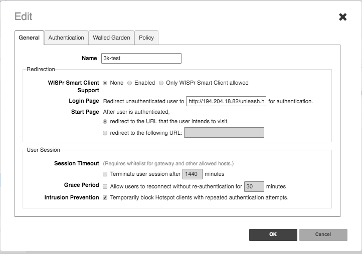 Loo WISPR profiil Services->Hotspot Services, mis on seotud Wi-Fi SSID-ga, antud näiteks vajad sa välist weebiserverit, kus unleash.html skript paikneb.