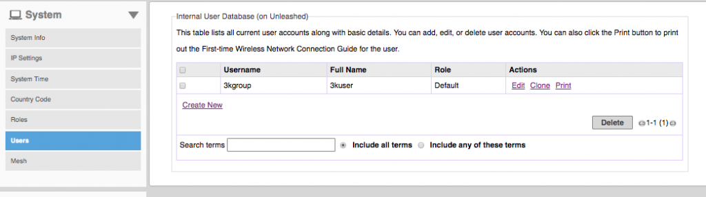 Seejärel loo sisese autentimise andmebaasi üks kasutaja ja parool, võid alati kasutada ka välist radiuse serverit aga antud näite puhul on sisene lihtsam.