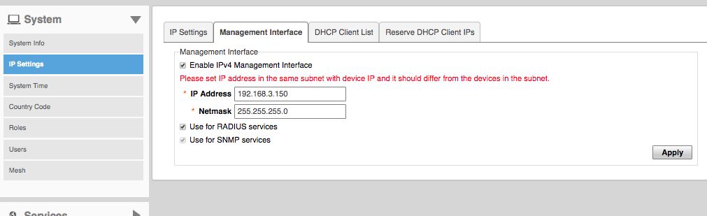 Määratle kõigepealt Ruckus võrgule halduse püsiip, see aadress on alati sama, isegi kui juhtap peaks muutuma.
