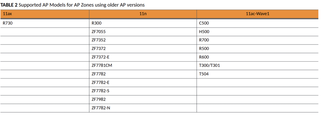 Suurim uuendus on siin !!! 6.1.1 toetab väga laialt erineva põlvkonna Ruckuse AP-sid, millest paljud on rohkem kui 5 aastat vanad ja ammu tootmisest maas. Kui võrk teenindab ladu või tööstusettevõtet, siis oleme näinud isegi 12a vanu Ruckuse seadmete eluvõimelisust, sest tegelik kiiruse vajadus on palju väiksem 11n standardi poolt pakutavast. Aga samas on ka tänapäeval interneti ühendused veel aeglasemad kui uusim 11ax Wi-Fi6 pakub, seega tihti piisab ka vanadest AP-dest paljudesse kohtadessed.