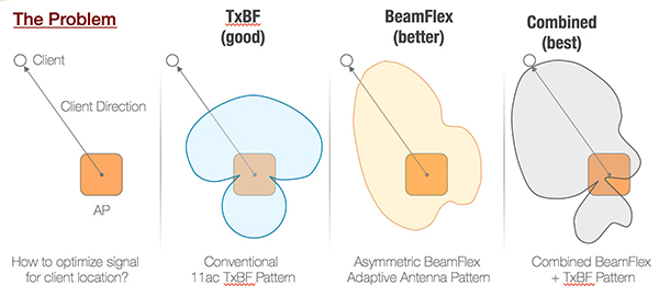 MIMO puhul ongi vaja selliseid signaale õhust eraldada, on vaja nad kõigepealt õhku saata optimaalselt ja siis ka vastu võtta, BeamFlex+ on MIMO suhtes täiesti ühilduv ja toimib korraga nelja ruumilise andmekanaliga. Tavakeeles tähendab see näiteks seda, et 130Mb kiirusest saab 300 Mb/s ja vastavalt 1.3 Gb/s 11ac standardi seadmega.